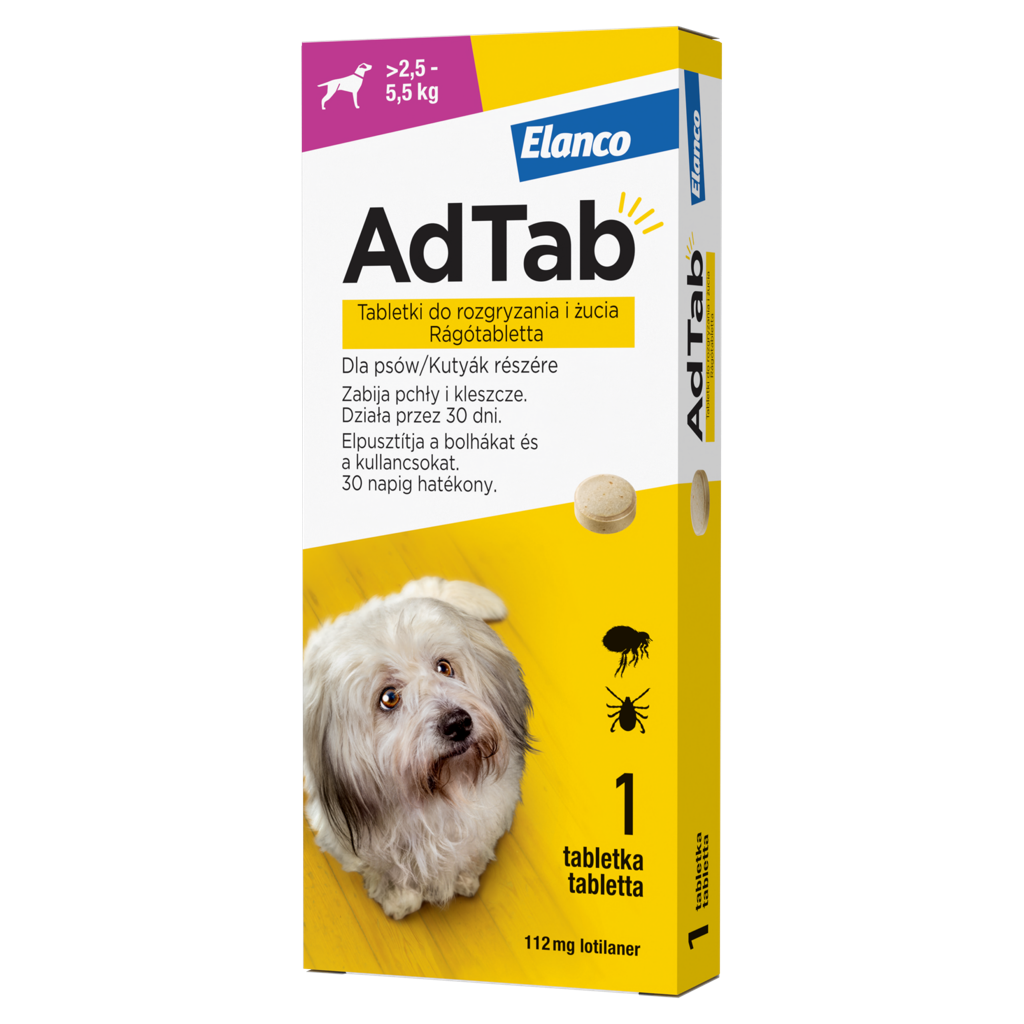 Az AdTab bolha és kullancs elleni tabletta kutyáknak hatékony védelmet nyújt a leggyakrabban előforduló külső élősködők ellen, beleértve a bolhákat és több kullancsfajt. Az ölő hatás gyorsan kialakul, és a védelem egy hónapon át fennmarad.